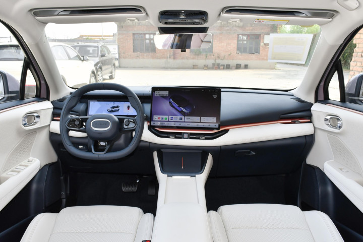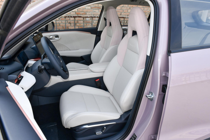 细节配置是领克06一直很舍得下本的地方。打开车门,首先是蓝灰色主色调的内饰,主打一个清新舒适。环抱式座舱设计,给人很强的安全感,尤其是座椅和门板上的软包,摸起来很细腻,没有那种硬邦邦的塑料感。前排座椅是仿皮材质,触感和真皮很接近,支持通风和加热。夏天开空调屁股不会黏腻,冬天加热很快,早晨坐进车里特别舒服。空间利用很讲究。怀挡机构释放了中央通道,前排水杯架、无线充电板、储物格都很顺手。手套箱和门板储物空间也不小,日常用的东西能规整地收纳,不会乱糟糟。